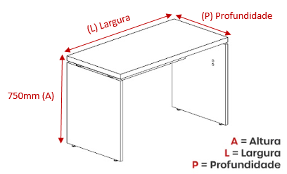 Tampo encabeçado de MDP 40mm de espessura com borda de1mm, retaguardas de MDP 15mm, pé painel em MDP 25mm com borda de 45mm na cor preta, sapatas regulaveis niveladores, com Gaveteiro fixo 2 gavetas - gabinete e frente das gavetas em MDP 15mm com borda 0,45mm, corpo das gavetas em galvalume cinza, desliza por corrediça metálica, puxador tipo alça cinza. Com chaves e travamento simultâneo das gavetas.